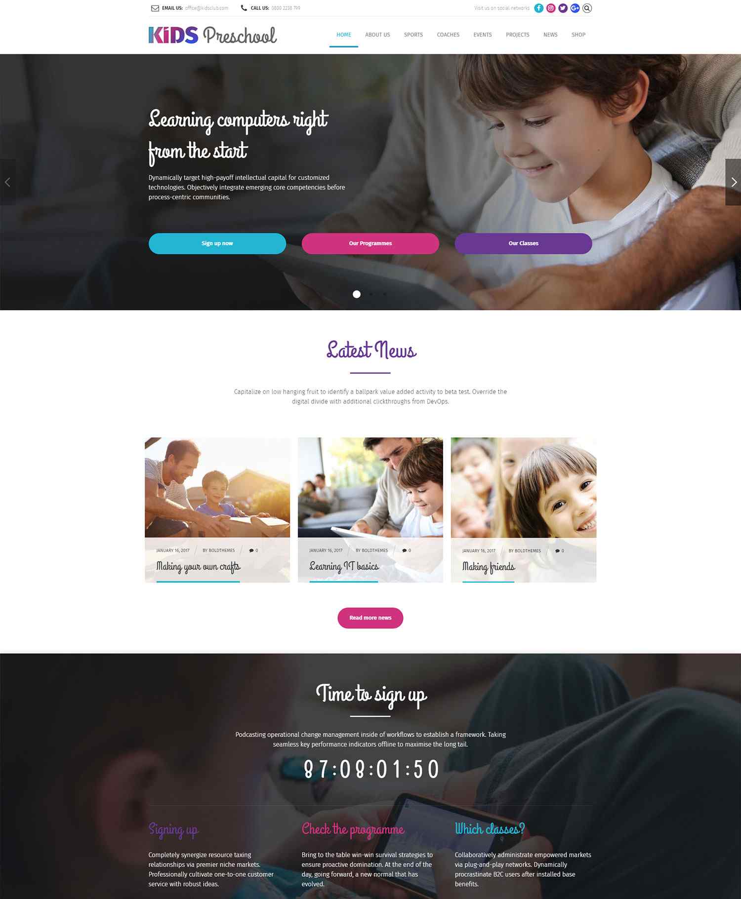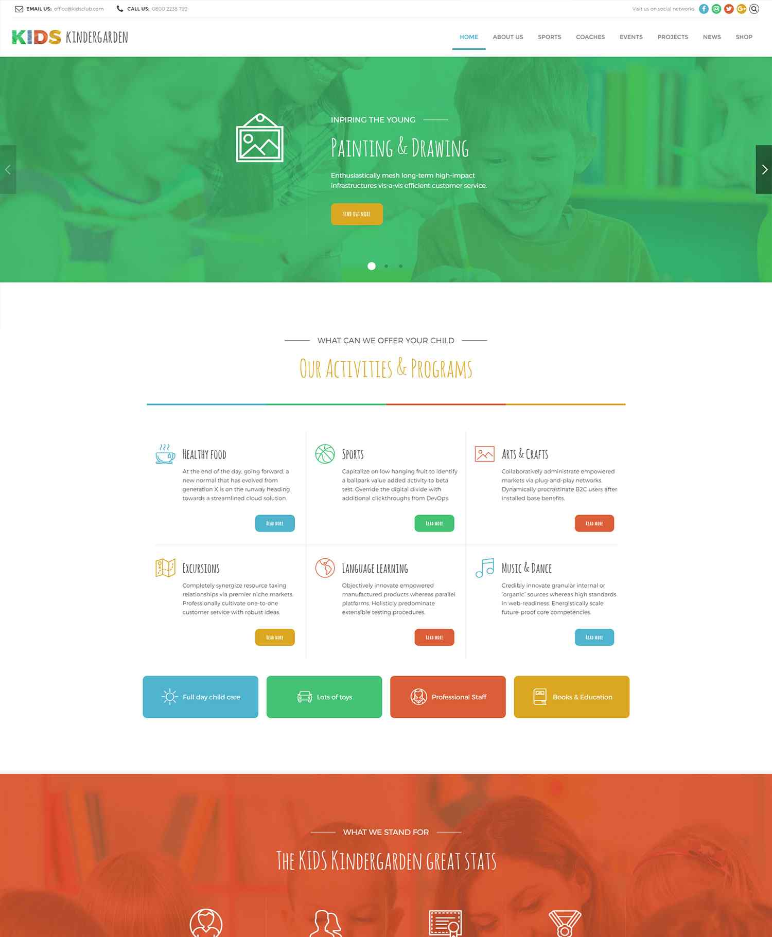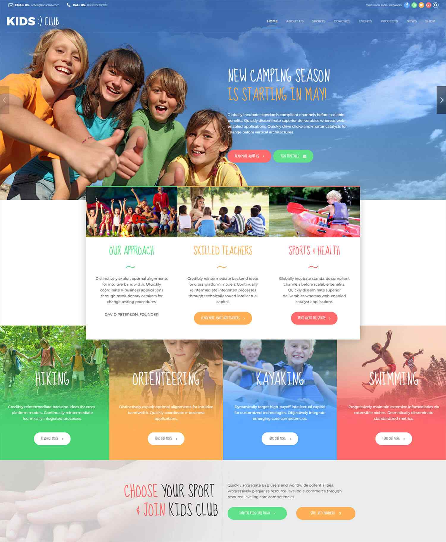 Full of options and flexible templates, Kids Club gives you a choice of carefully crafted sample pages and homepages for your website.