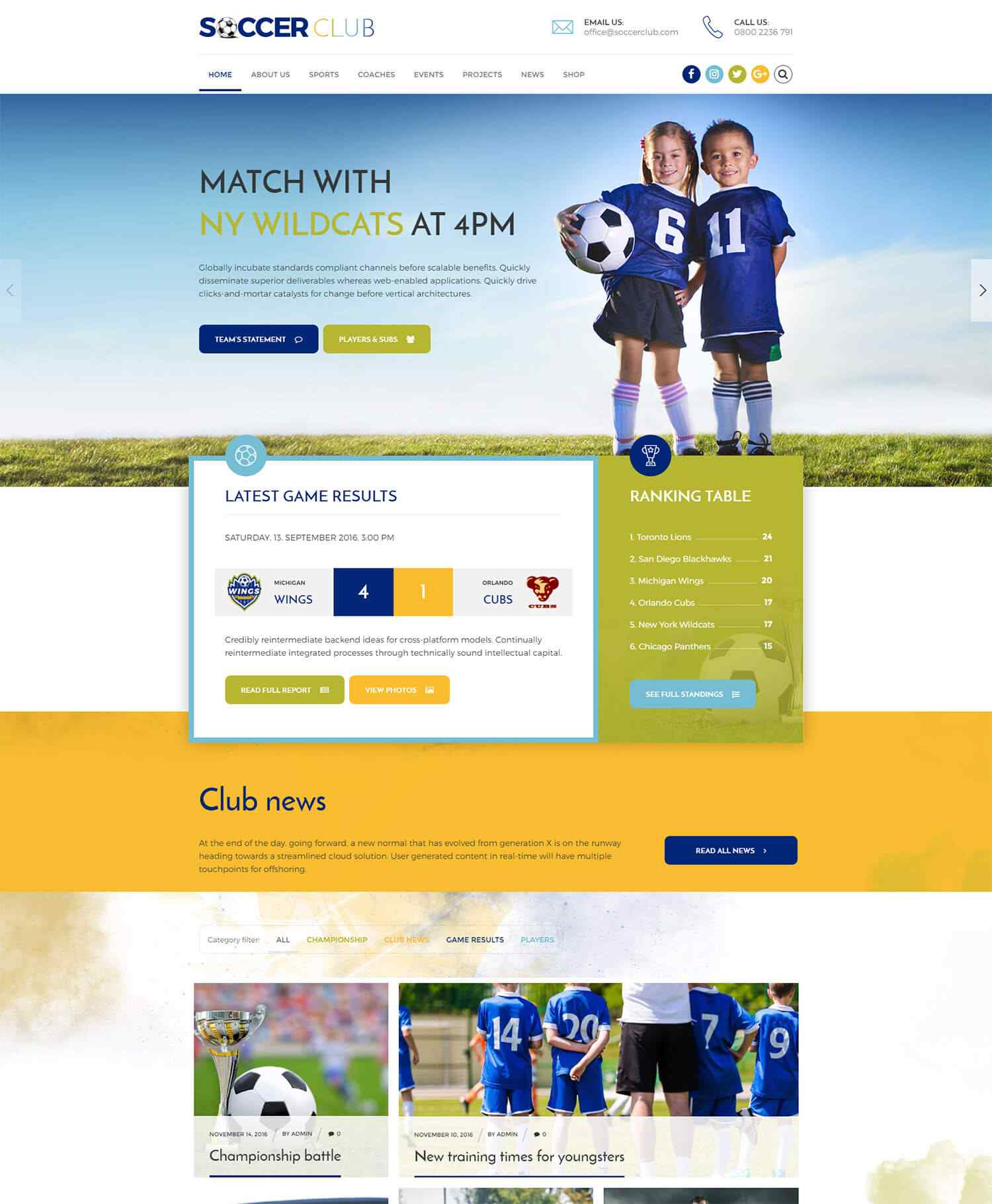 Focusing on Kids sport clubs, with results and featured products.